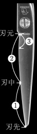 刃中から刃先に向かっては、毛をとらえるように緩やかな刃線になっています。